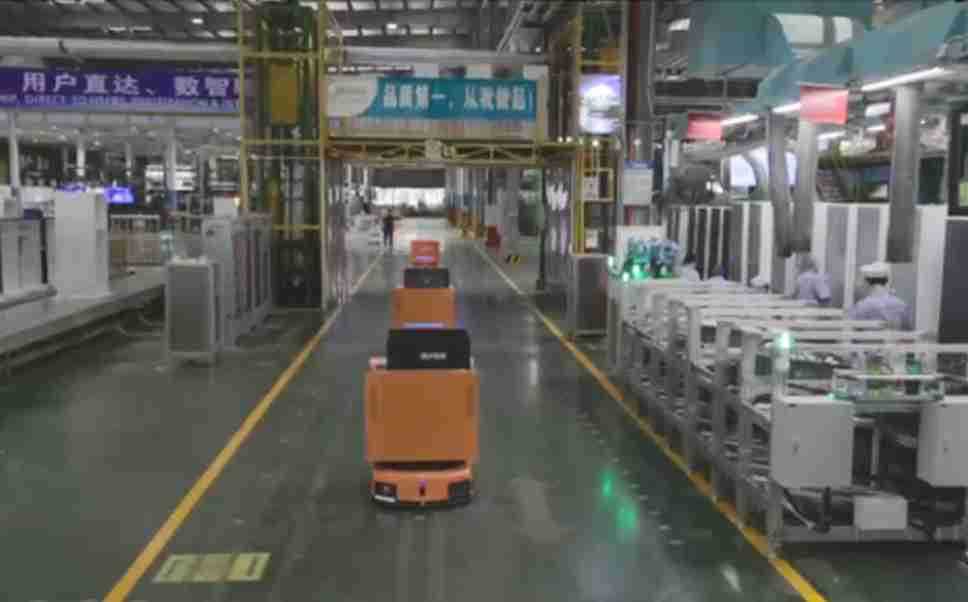 为车载冰箱物流配送打造的智能解决方案,,,包含产中物流通过潜伏举升AMR搬运至线边,,产后成品物流智能仓储,,,流程包含产中物流智能齐套入库,,,线边安灯叫料AMR智能配送至线边,,成品入库、、出库,,通过无人堆高车机器人,,,,智能仓储管理替代人工作业管理,,,,实现更高存储、、、更高效率、、更具柔性化的解决方案。。