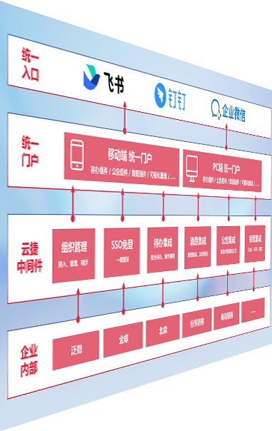 对协作平台提供支持服务,,支持企业应用与协作平台对接,,,包含组织同步、、、消息集成、、、待办集成等。。支持目前主流的协作平台:钉钉、、、、企微和飞书。。